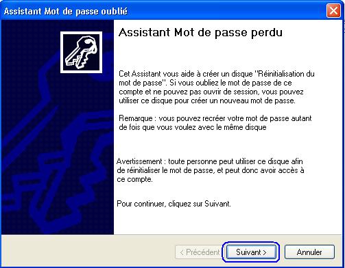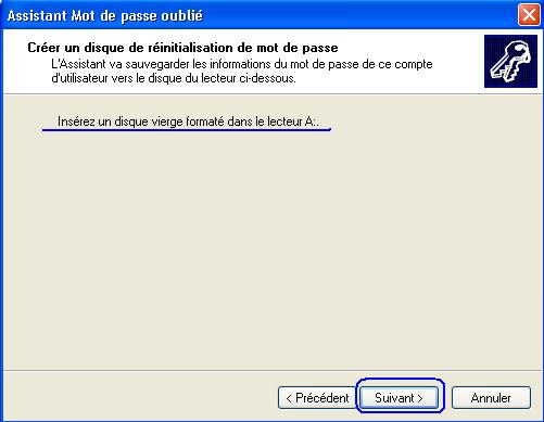 Insérer la disquette et cliquer sur suivant