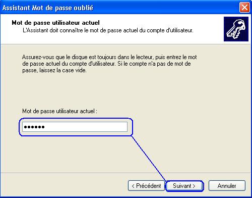 Saisisser alors votre mot de passe actuel , cliquer sur suivant .