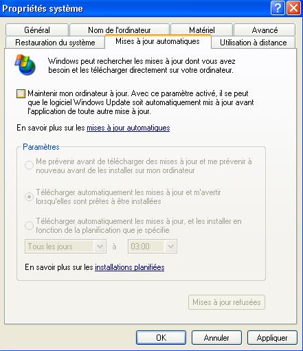Comment désactiver les mises à jour windows xp (toutes versions)